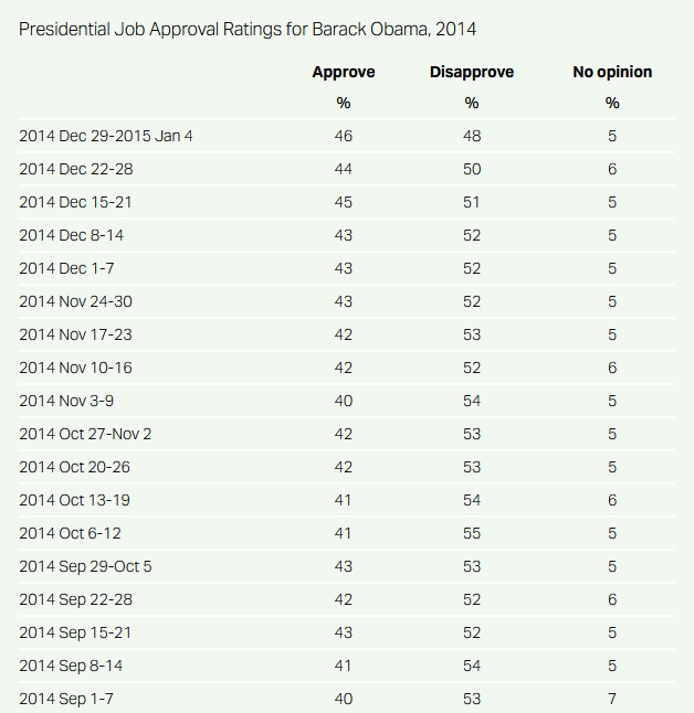 President Obama’s approval rating was consistently poor during that time, with polls showing it as low as 40% in the weeks leading up to the election. Upon closer inspection, voters were particularly disgruntled with things such as the state of the economy, the administration’s handling of immigration, and the failed rollout of the Obamacare website.